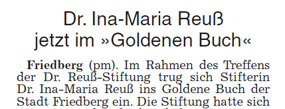 Dr. Ina-Maria Reuß mit Bürgermeister Dirk Antkowiak beim Eintrag in das Goldene Buch der Stadt Friedberg (Hessen)